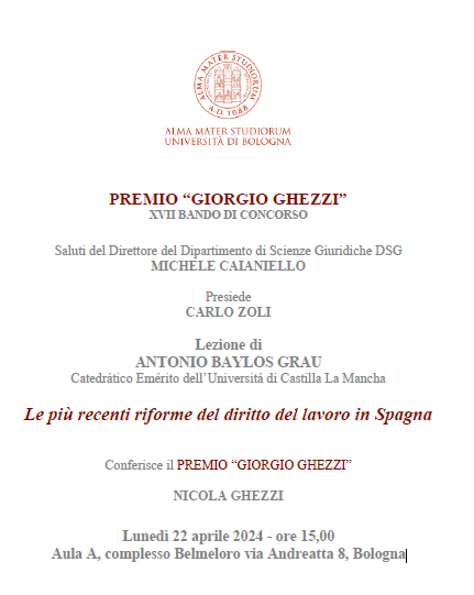Seguirà il conferimento del premio di laurea "Giorgio Ghezzi"