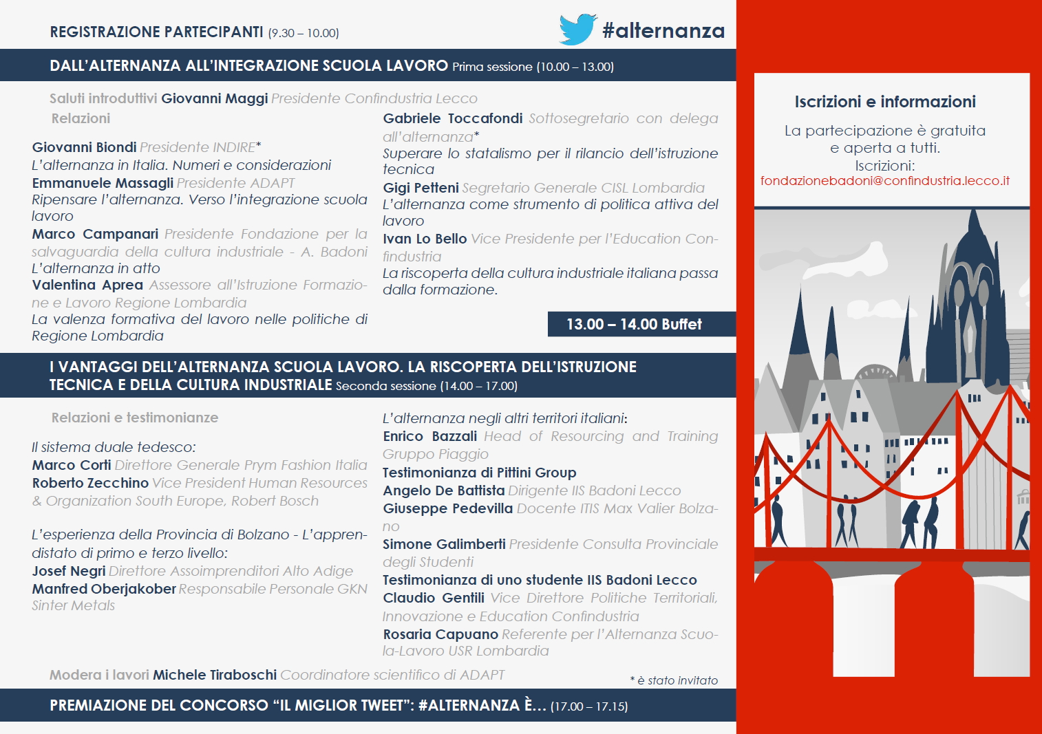 Da Ven, 07/02/2014 a Ven, 07/02/2014 Mode On-site-only 14/11/2022 LECCO - Una migliore integrazione scuola lavoro per la salvaguardia della cultura industriale. Seconda giornata nazionale sul tema dell’alternanza on-site only | - via Gaetano Previati 1/C