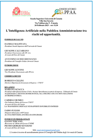 L’evento è in corso di accreditamento presso il Consiglio dell’Ordine degli Avvocati di Catania