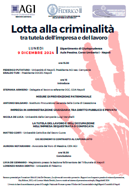 Saranno presentati per l’occasione i libri di Livia De Gennaro, La riforma del concordato preventivo. Rapporti con il sequestro penale e le misure di prevenzione, Key Editore, 2023, e di Lorenzo Maria Dentici, Lavoro e tutele nel sistema di prevenzione antimafia, Giappichelli 2024