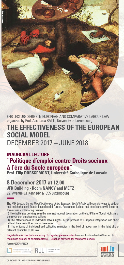 Da Ven, 08/12/2017 a Ven, 08/12/2017 Mode On-site-only 14/11/2022 LUXEMBOURG - Politique d'emploi contre Droits sociaux à l'ère du Socle européen on-site only | 29, Avenue J.F Kennedy - h. 12