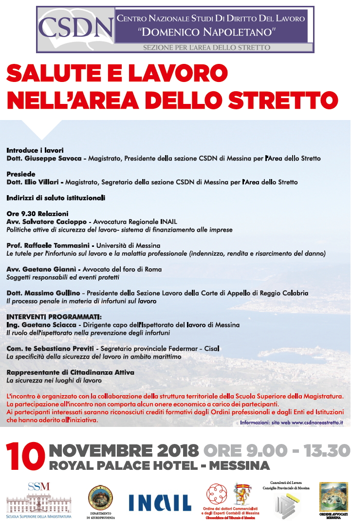 Da Sab, 10/11/2018 a Sab, 10/11/2018 Mode On-site-only 14/11/2022 MESSINA - Salute e lavoro nell'Area dello Stretto on-site only |