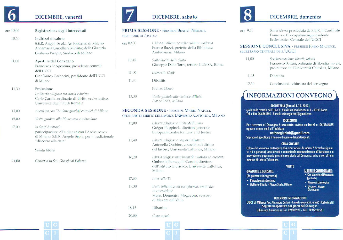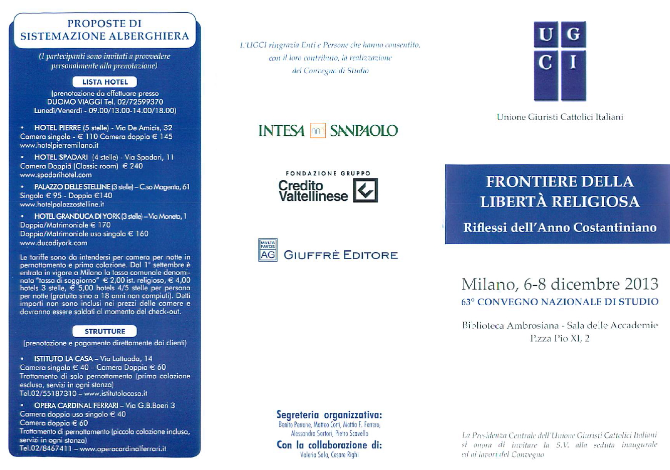 Da Ven, 06/12/2013 a Ven, 06/12/2013 Mode On-site-only 14/11/2022 MILANO - Frontiere della libertà religiosa. 63° convegno nazionale UGCI (6-8 dicembre 2013) on-site only | Biblioteca Ambrosiana, p.zza Pio XI 2