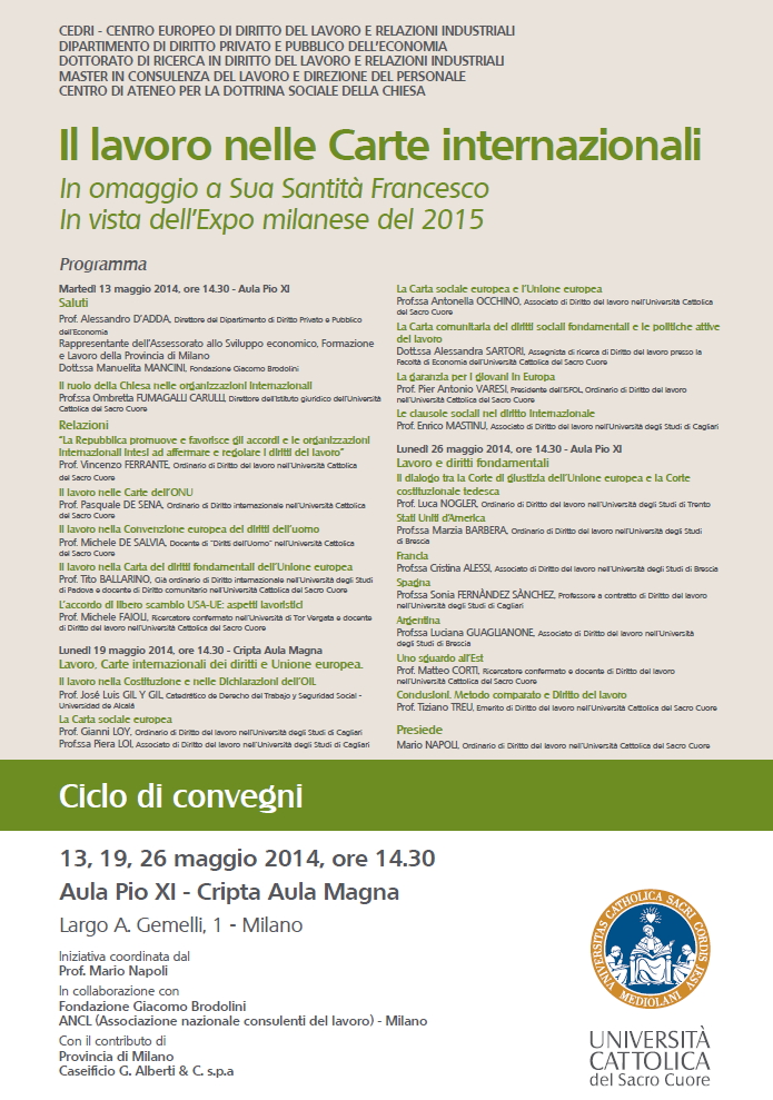 MILANO - Il lavoro nelle Carte internazionali. Ciclo di convegni