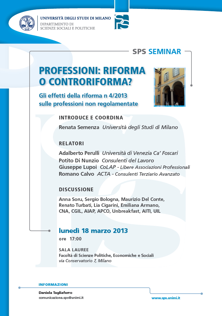 Da Lun, 18/03/2013 a Lun, 18/03/2013 Mode On-site-only 14/11/2022 MILANO - Professioni: riforma o controriforma? Gli effetti della riforma n. 4/13 sulle professioni non regolamentate on-site only | via Conservatorio, 7 - 17.00