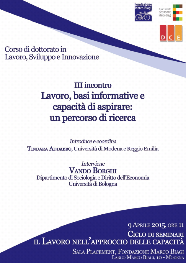 MODENA - III incontro Il lavoro nell’approccio delle capacità