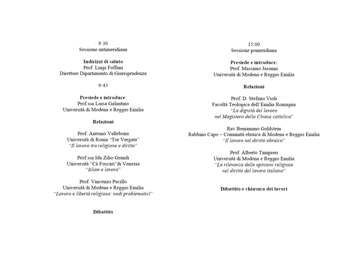 Da Gio, 15/11/2012 a Gio, 15/11/2012 Mode On-site-only 14/11/2022 MODENA - Religione, lavoro, diritti on-site only | Università degli Studi di Modena e Reggio Emilia - 9.30