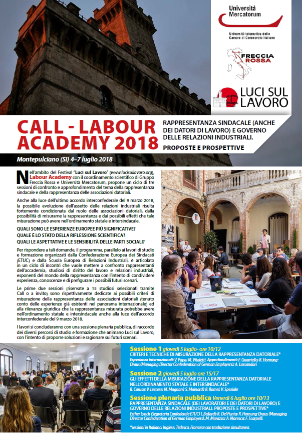 Da Mer, 04/07/2018 a Mer, 04/07/2018 Mode On-site-only 14/11/2022 MONTEPULCIANO - Rappresentanza sindacale (anche dei datori di lavoro) e governo delle relazioni industriali. Proposte e prospettive (4-7 luglio 2018) on-site only |