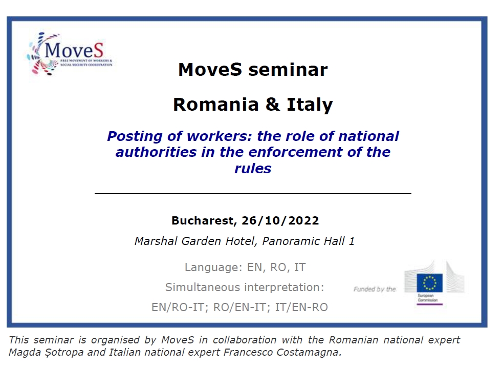 Participation in the seminar is free of charge. Please note that all costs connected to the participation to the seminar (travel, accommodation) are at the participants' expense. Admission is subject to availability of seating. Simultaneous interpretation EN/RO-IT; RO/EN-IT; IT/EN-RO will be provided.