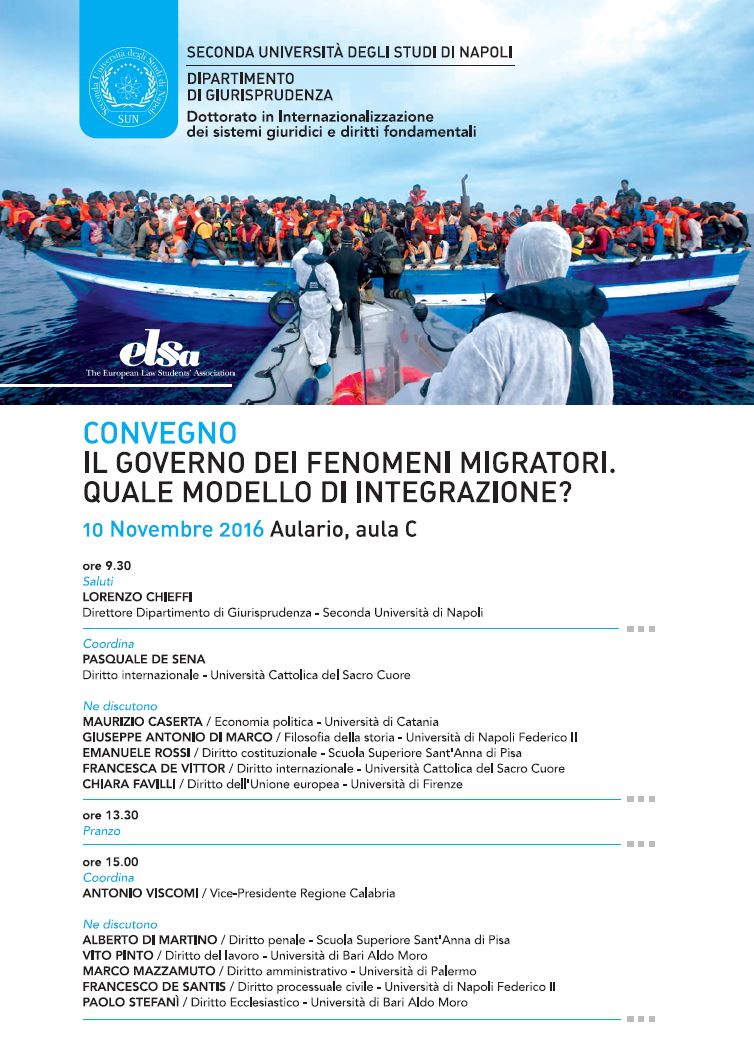 Da Gio, 10/11/2016 a Gio, 10/11/2016 Mode On-site-only 14/11/2022 NAPOLI - Il Governo dei fenomeni migratori. Quale modello di integrazione? on-site only | Aulario, aula C - ore 9.30