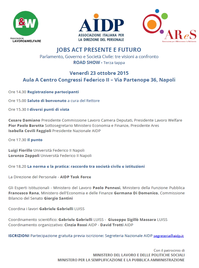 NAPOLI - Jobs Act Presente e Futuro - Parlamento, Governo e Società Civile: tre visioni a confronto
