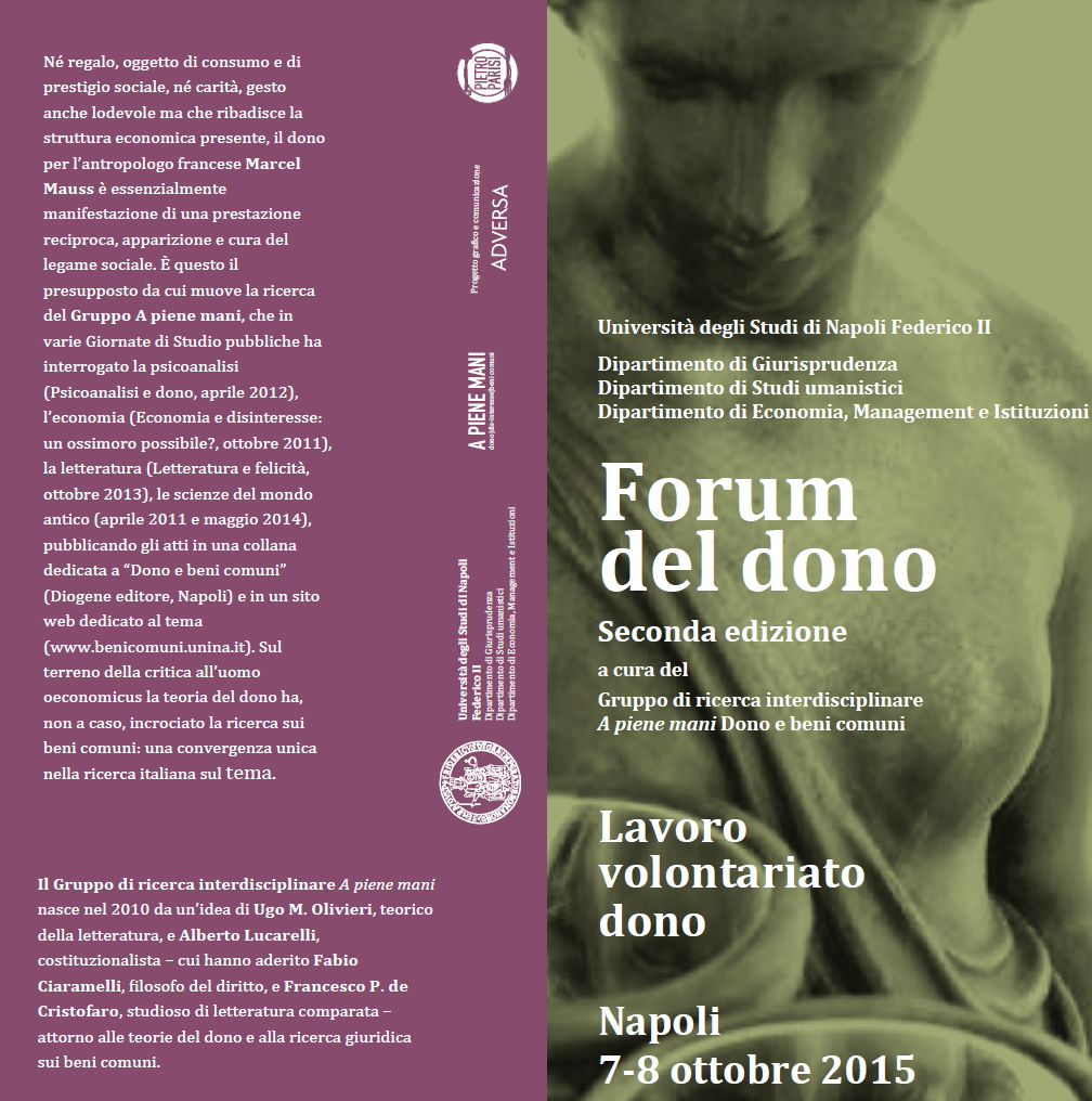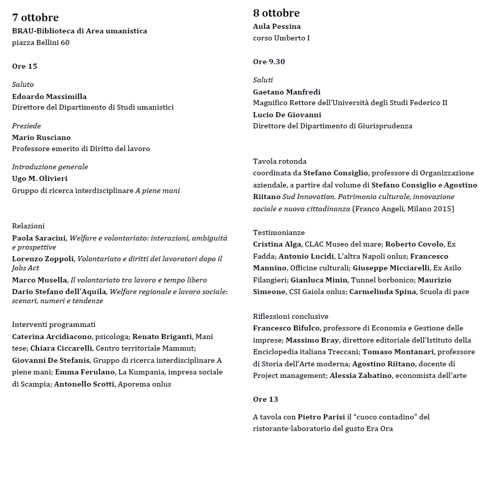 Da Mer, 07/10/2015 a Mer, 07/10/2015 Mode On-site-only 14/11/2022 NAPOLI - Lavoro volontariato dono (7-8 ottobre 2015) on-site only | Università degli Studi di Napoli Federico II