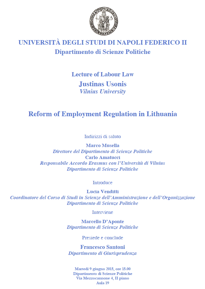 Da Mar, 09/06/2015 a Mar, 09/06/2015 Mode On-site-only 14/11/2022 NAPOLI - Reform of Employment Regulation in Lithuania on-site only | Via Mezzocannone, 4 - 15:00