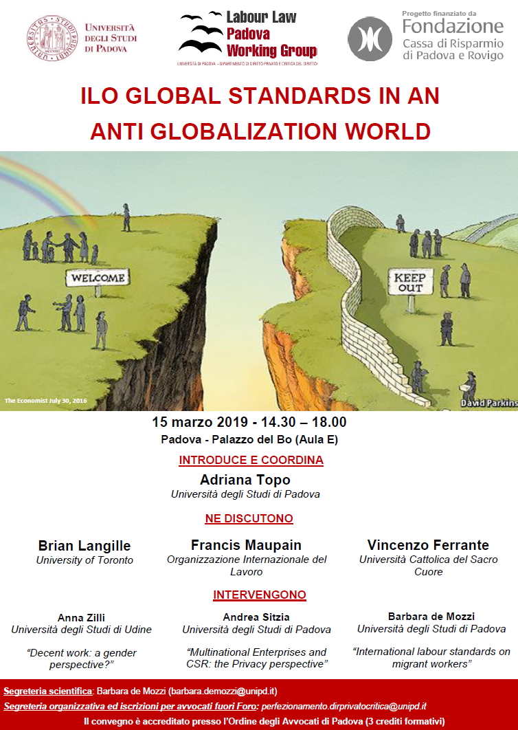 Da Ven, 15/03/2019 a Ven, 15/03/2019 Mode On-site-only 14/11/2022 PADOVA - ILO Global standards in an anti globalization world on-site only | Palazzo del Bo - ore 14.30