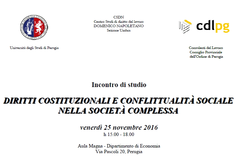 Da Ven, 25/11/2016 a Ven, 25/11/2016 Mode On-site-only 14/11/2022 PERUGIA - Diritto costituzionali e conflittualità sociale nella società complessa on-site only | Via Pascoli, 20 - ore 15
