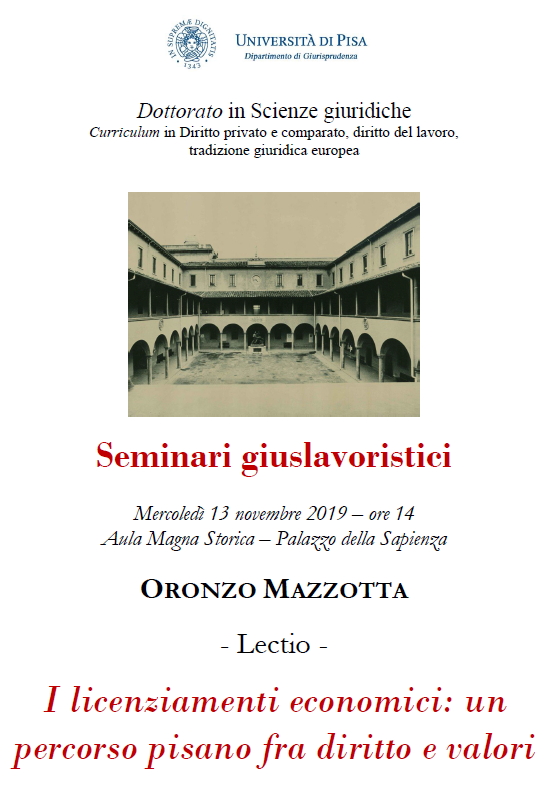 PISA - I licenziamenti economici: un percorso pisano fra diritto e valori