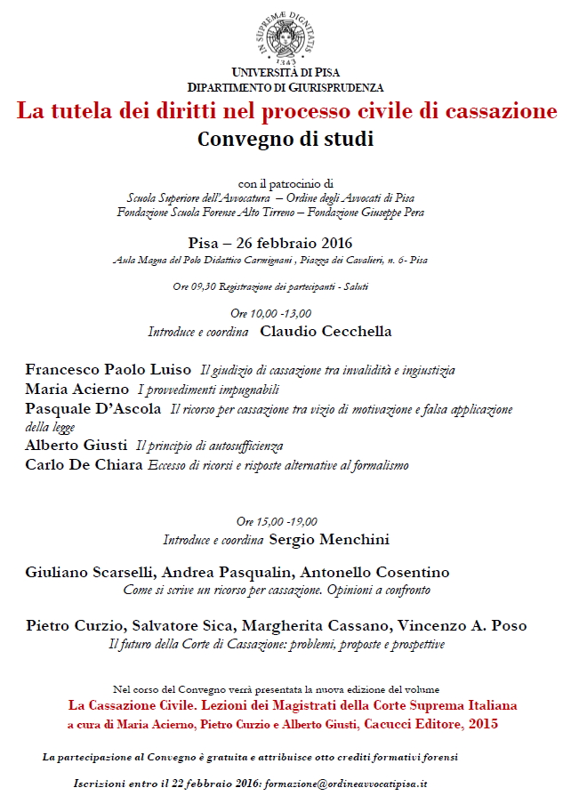 PISA - La tutela dei diritti nel processo civile di Cassazione