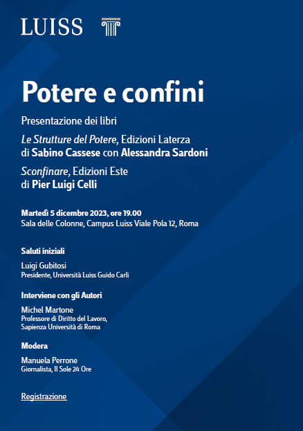 Da Mar, 05/12/2023 a Mar, 05/12/2023 Mode On-site-only File Programma88.25 KB 29/11/2023 Potere e confini on-site only h. 19:00 | Viale Pola 12, Roma Sala delle Colonne, Campus Luiss Presentazione dei volumi “Le Strutture del potere” di Sabino Cassese e “Sconfinare” di Pier Luigi Celli