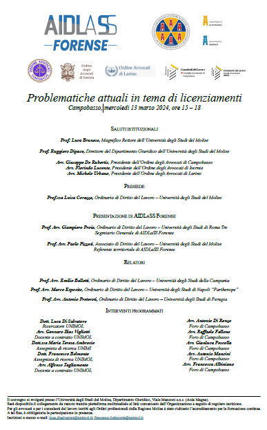 Iscrizioni a mezzo e-mail: luca.disalvatore@unimol.it; francesco.belmonte@unimol.it