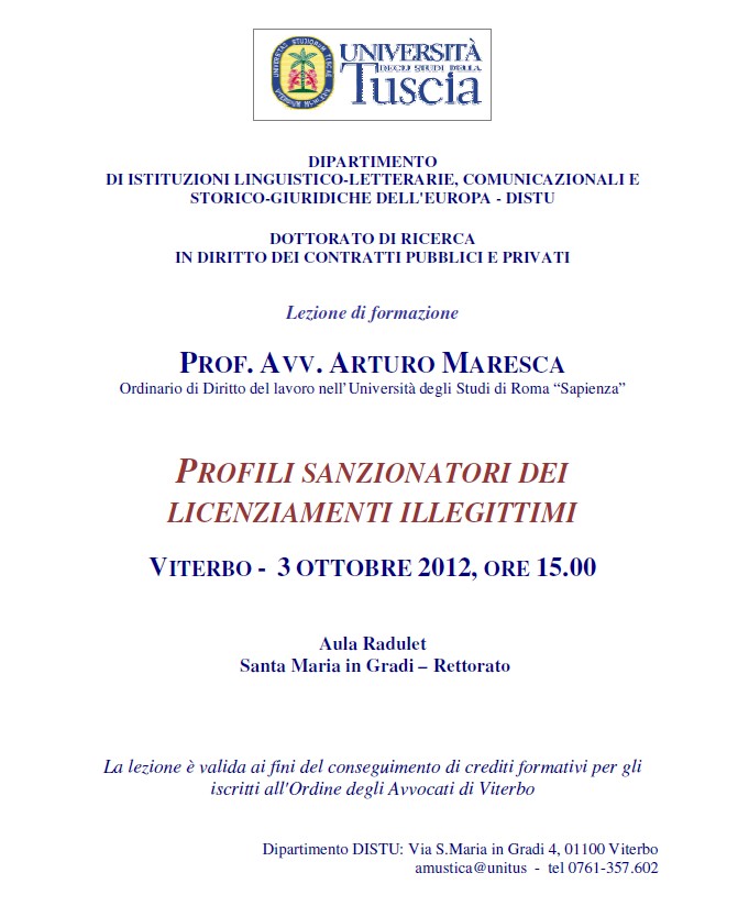 Profili sanzionatori dei licenziamenti illegittimi. Lezione di formazione del prof. Arturo Maresca