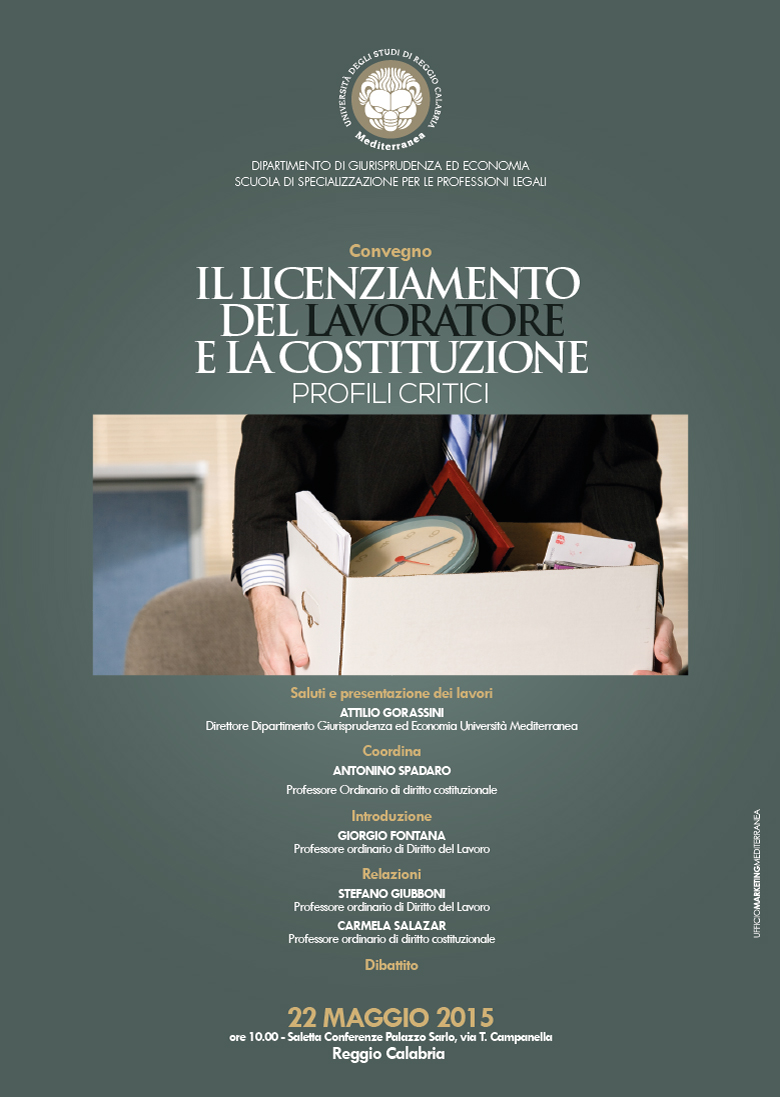 REGGIO CALABRIA - Il licenziamento del lavoratore e la Costituzione - Profili critici