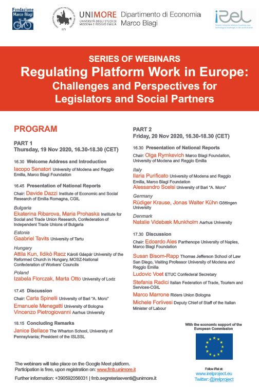 Regulating Platform Work in Europe: Challenges and Perspectives for Legislators and Social Partners (19-20 Nov 2020)
