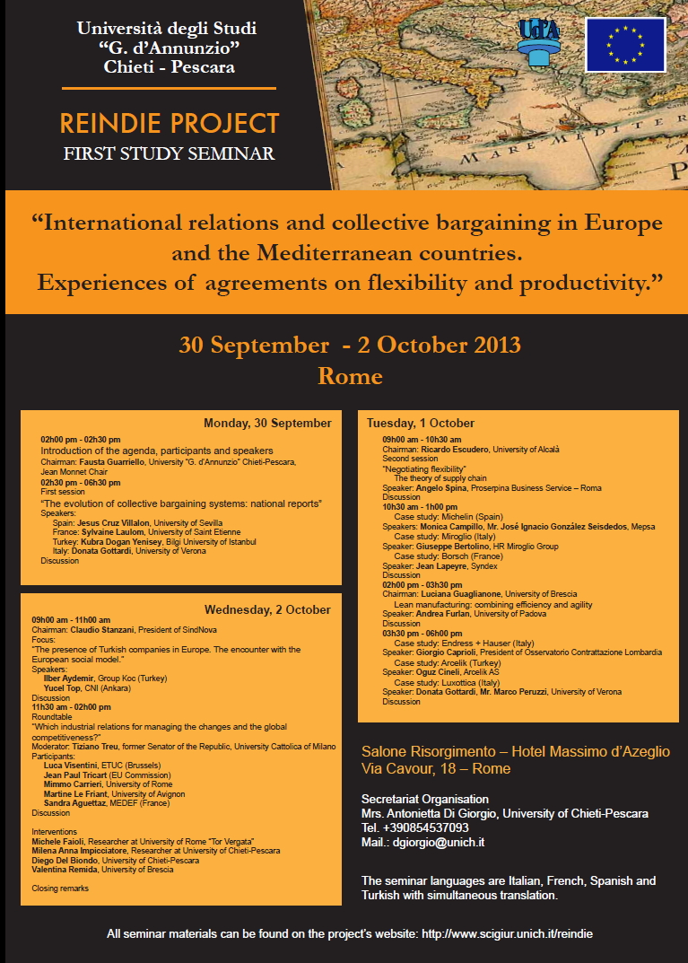 ROMA - 30 sett.- 2 ott. International relations and collective bargaining in Europe and the Mediterranean countries. Experiences of agreements on flexibility and productivity