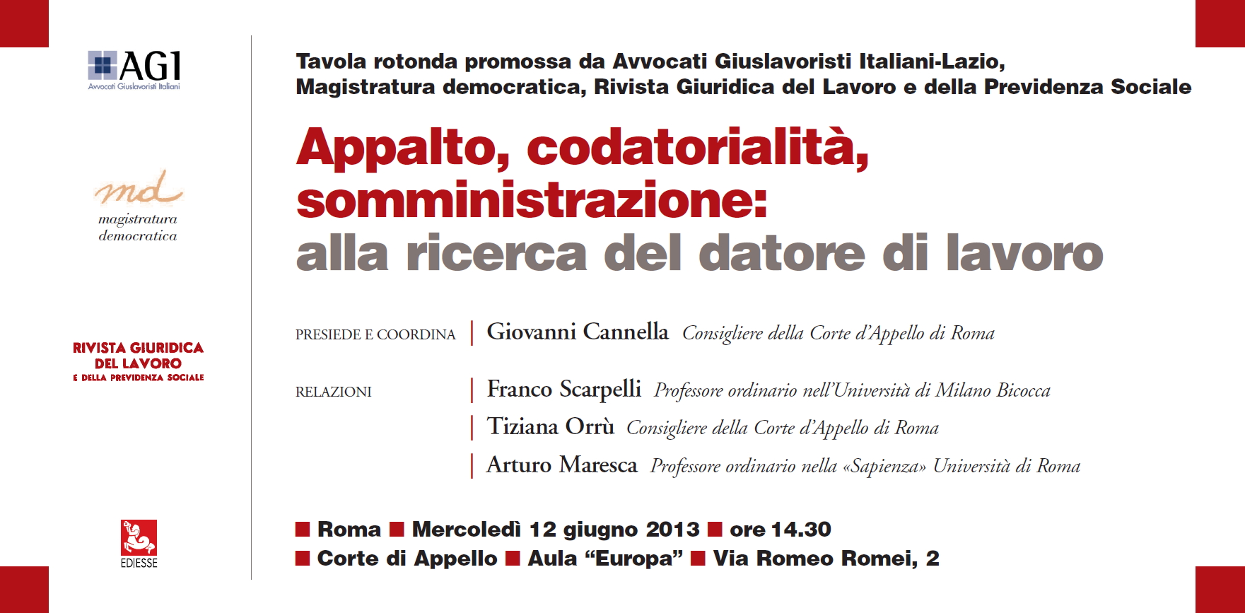 ROMA - Appalto, codatorialità, somministrazione: alla ricerca del datore di lavoro