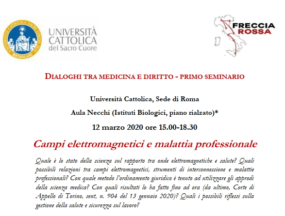 Da Gio, 12/03/2020 a Gio, 12/03/2020 Mode On-site-only 14/11/2022 ROMA - Campi elettromagnetici e malattia professionale - RINVIATO a data da destinarsi on-site only | Aula Necchi - ore 15 RINVIATO A DATA DA DEFINIRSI