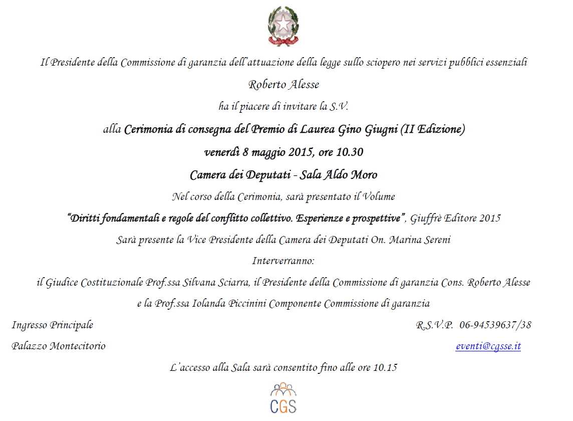 ROMA - Cerimonia di consegna del Premio di Laurea Gino Giugni (II Edizione)