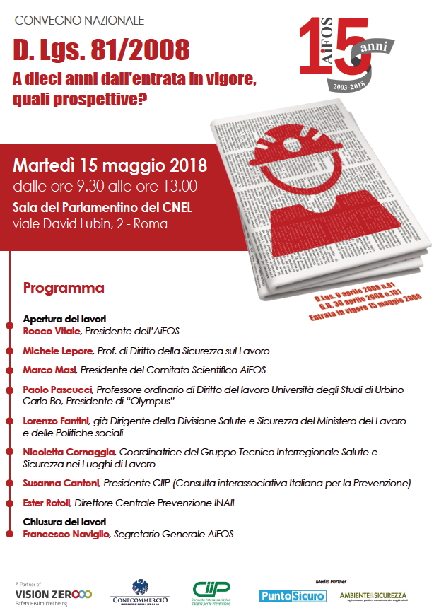 Da Mar, 15/05/2018 a Mar, 15/05/2018 Mode On-site-only 14/11/2022 ROMA - D. Lgs. 81/2008 - A dieci anni dall'entrata in vigore, quali prospettive? on-site only | Viale David Lubin, 2 - ore 9.30