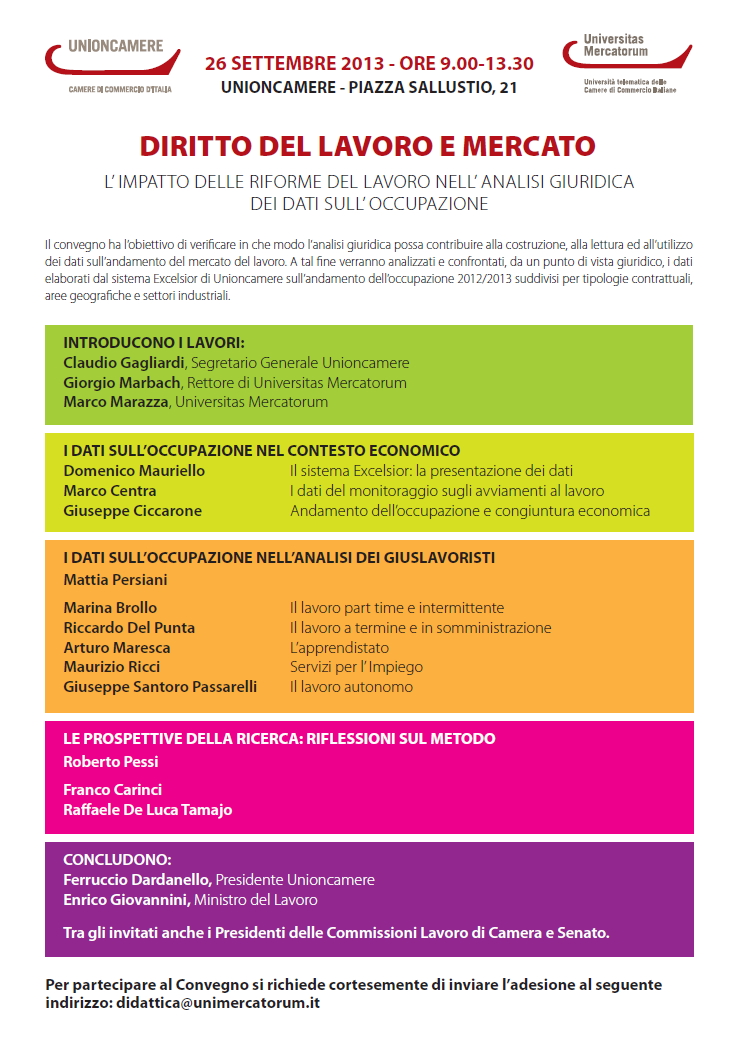 ROMA - Diritto del lavoro e mercato. L’impatto delle riforme del lavoro nell’analisi giuridica dei dati sull’occupazione