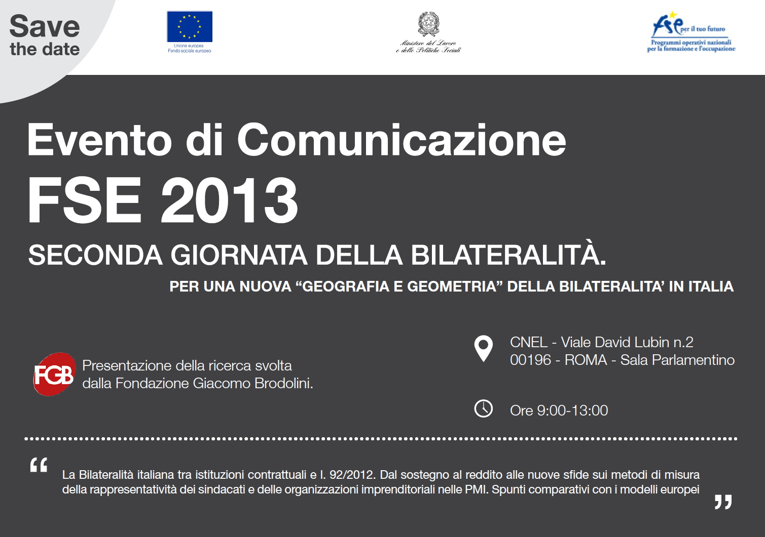 ROMA - Evento di comunicazione FSE 2013. Seconda giornata della bilateralità. Per una nuova 'geografia e geometria' della bilateralità in Italia