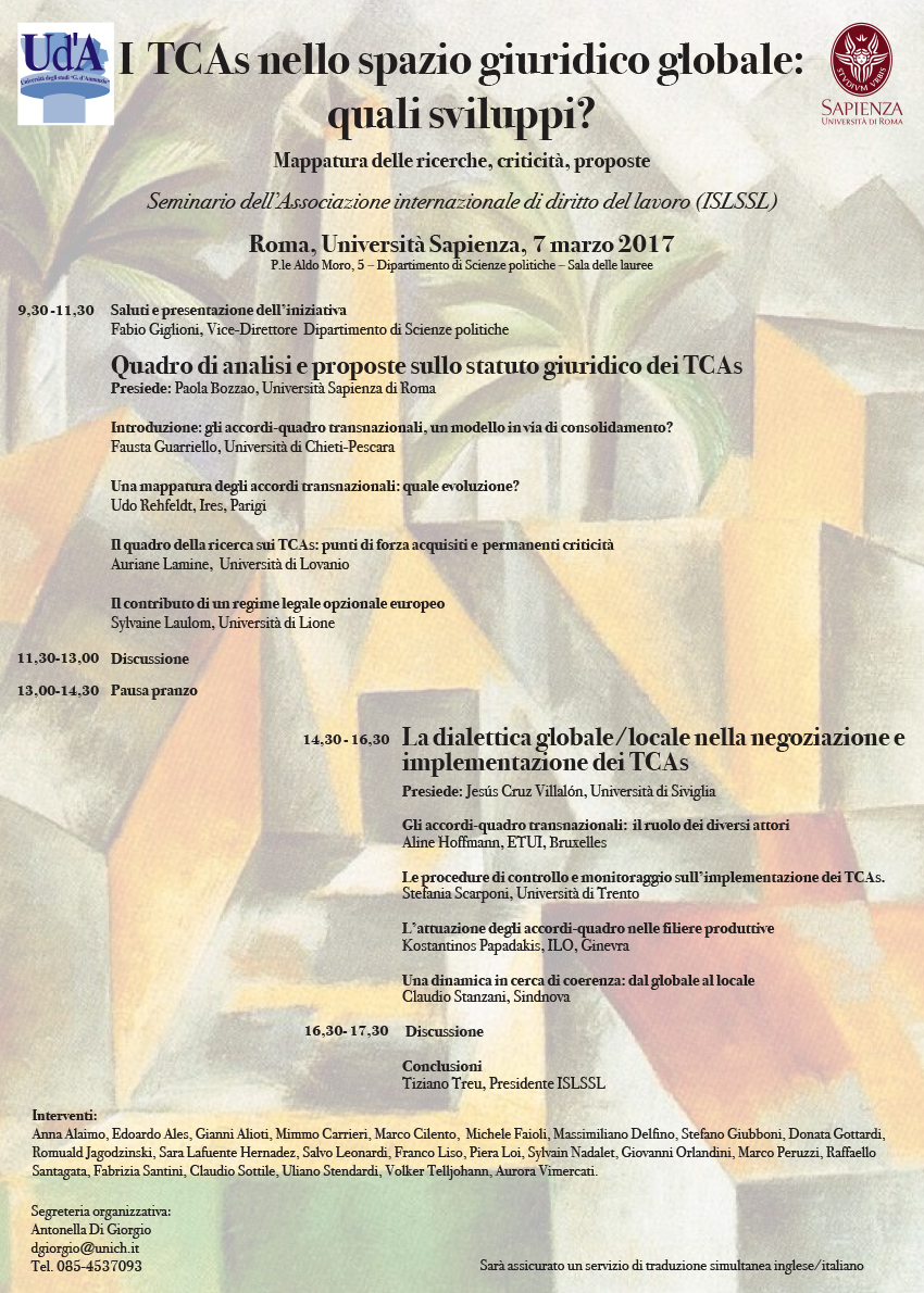 Da Mar, 07/03/2017 a Mar, 07/03/2017 Mode On-site-only 14/11/2022 ROMA - I TCAs nello spazio giuridico globale: quali sviluppi? on-site only | P.le Aldo Moro, 5 - ore 9.30