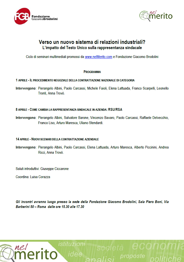 ROMA - Il procedimento negoziale della contrattazione nazionale di categoria. Ciclo di seminari multimediali: Verso un nuovo sistema di relazioni industriali? L’impatto del Testo Unico sulla rappresentanza sindacale