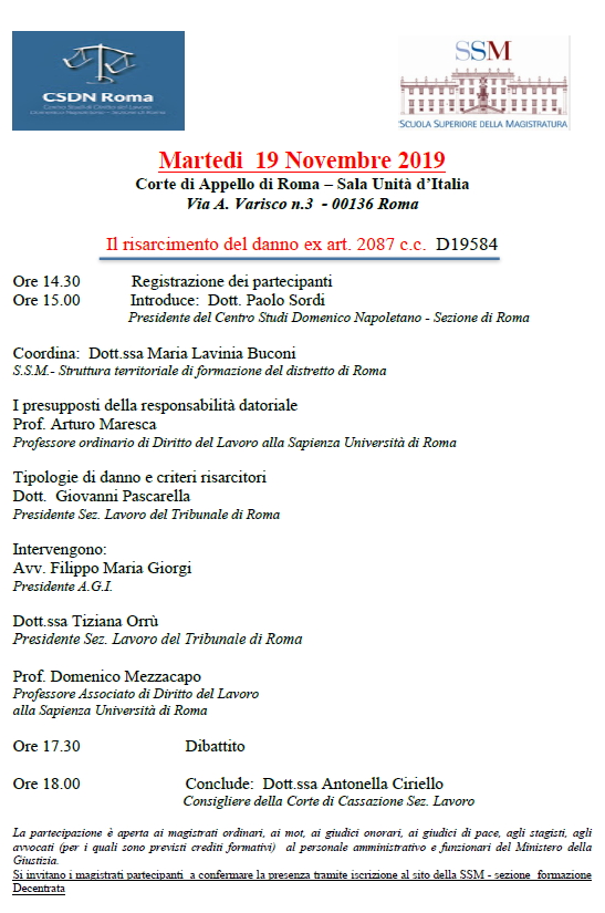 ROMA - Il risarcimento del danno ex art. 2087 c.c. D19584