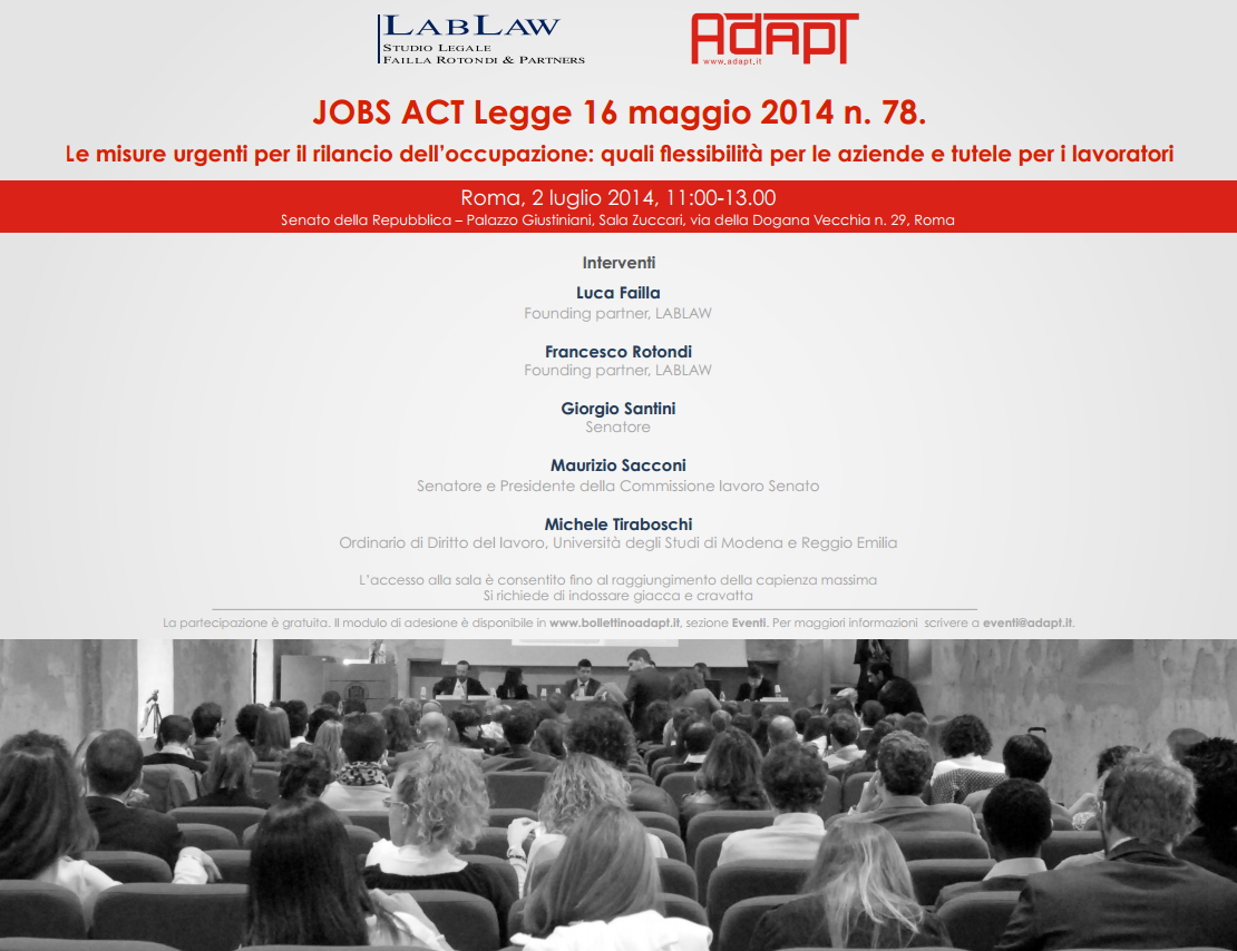 Da Mer, 02/07/2014 a Mer, 02/07/2014 Mode On-site-only 14/11/2022 ROMA - Jobs Act. Le misure urgenti per il rilancio dell’occupazione: quali flessibilità per le aziende e tutele per i lavoratori on-site only | via della Dogana Vecchia 29 - 11.00