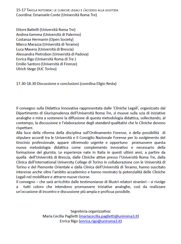 ROMA - La didattica innovativa: le "cliniche legali" in Italia e il confronto con le esperienze straniere