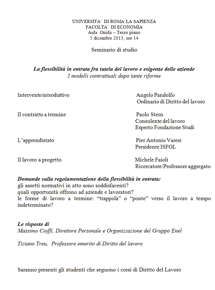 Da Gio, 05/12/2013 a Gio, 05/12/2013 Mode On-site-only 14/11/2022 ROMA - La flessibilità in entrata fra tutela del lavoro e esigenze delle aziende. I modelli contrattuali dopo tante riforme on-site only | via del Castro Laurenziano, 9 - 14,00