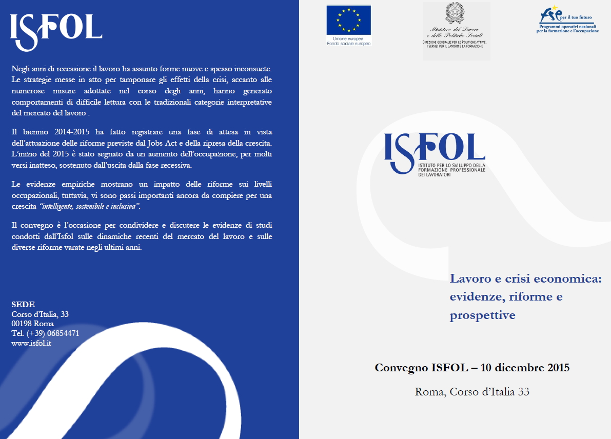 Da Gio, 10/12/2015 a Gio, 10/12/2015 Mode On-site-only 14/11/2022 ROMA - Lavoro e crisi economica: evidenze, riforme e prospettive on-site only | Corso d’Italia 33 - ore 9
