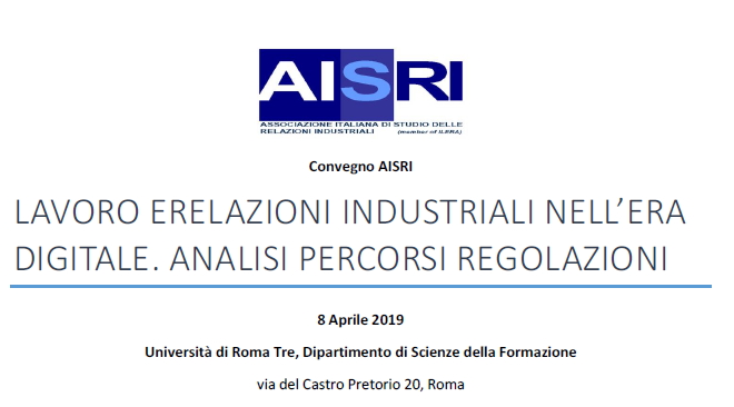 ROMA - Lavoro e relazioni industriali nell'era digitale. Analisi percorsi regolazioni
