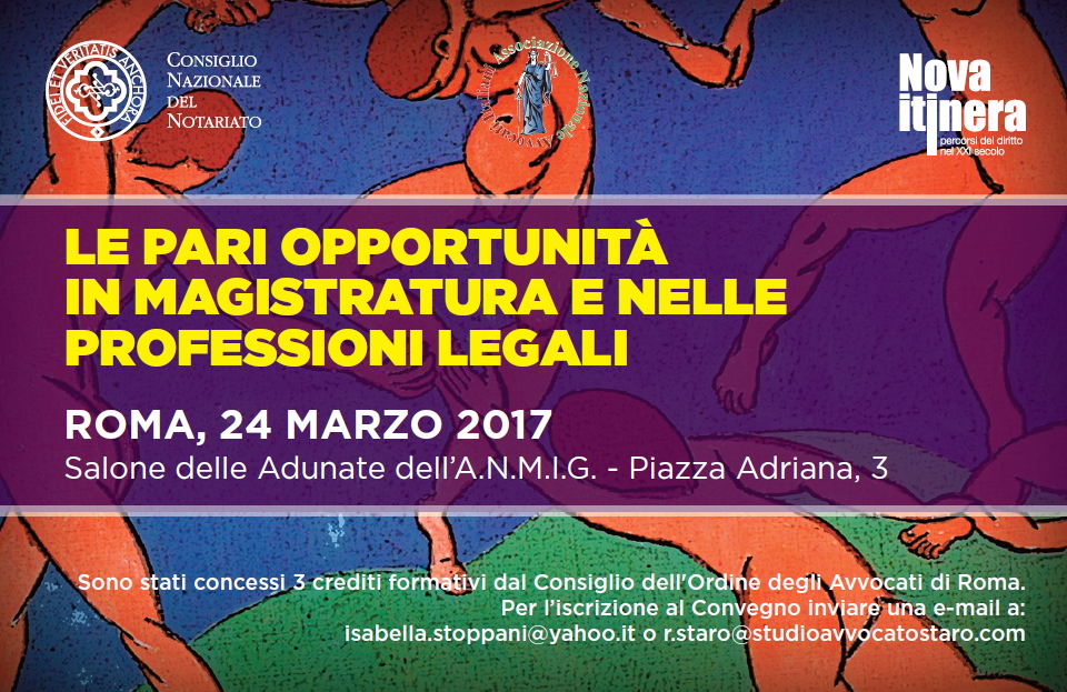 Da Ven, 24/03/2017 a Ven, 24/03/2017 Mode On-site-only 14/11/2022 ROMA - Le pari opportunità in magistratura e nelle professioni legali on-site only | Piazza Adriana, 3 - ore 9.30