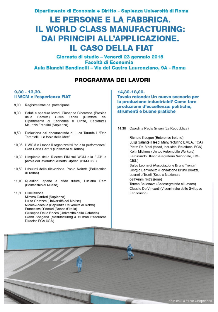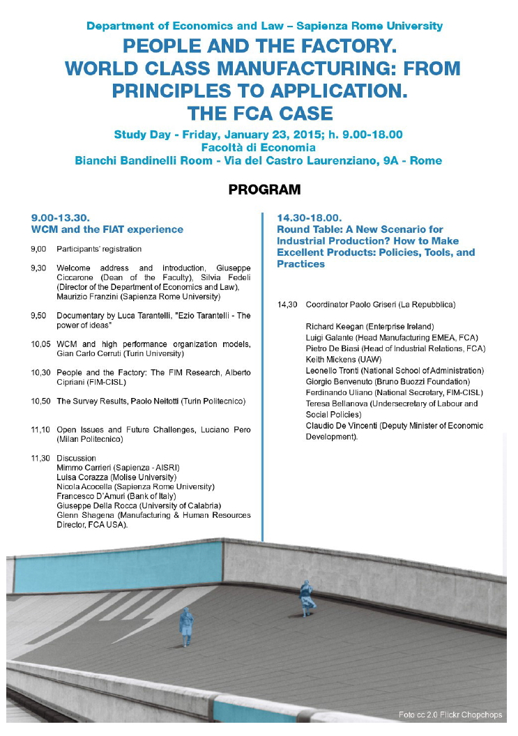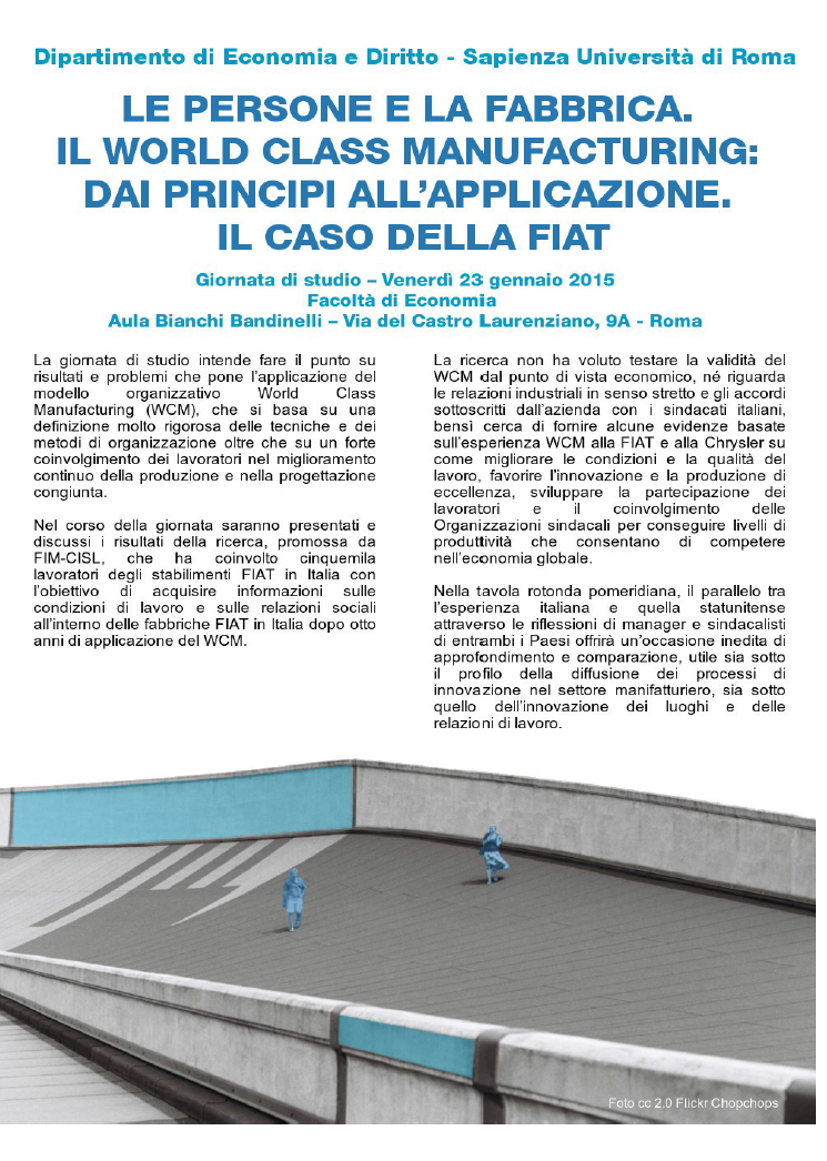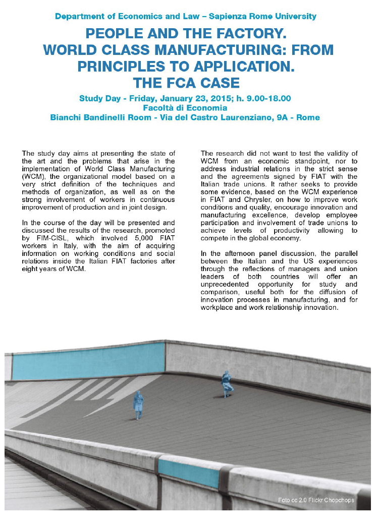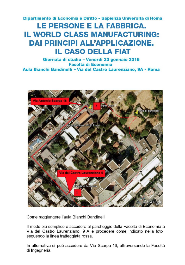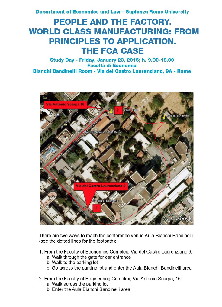 Da Ven, 23/01/2015 a Ven, 23/01/2015 Mode On-site-only 14/11/2022 ROMA - Le persone e la fabbrica. Il World Class Manifacturing: dai principi all’applicazione. Il caso della FIAT on-site only | via del Castro Laurenziano, 9