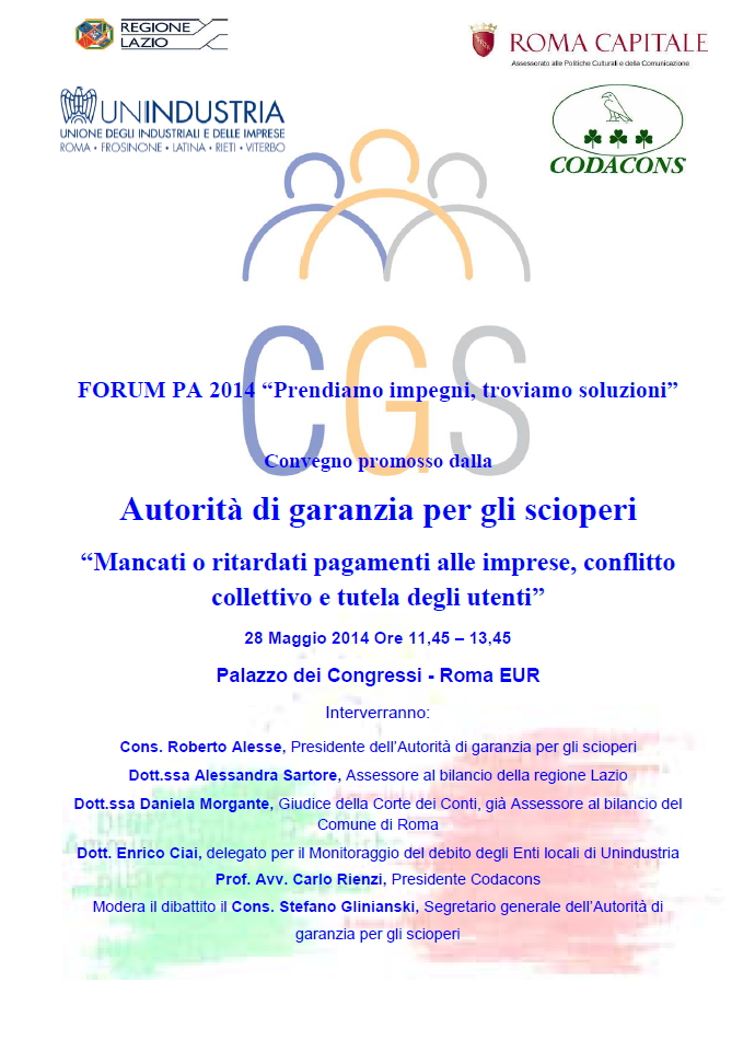 Da Mer, 28/05/2014 a Mer, 28/05/2014 Mode On-site-only 14/11/2022 ROMA - Mancati o ritardati pagamenti alle imprese, conflitto collettivo e tutela degli utenti on-site only | Palazzo dei congressi - 11,45
