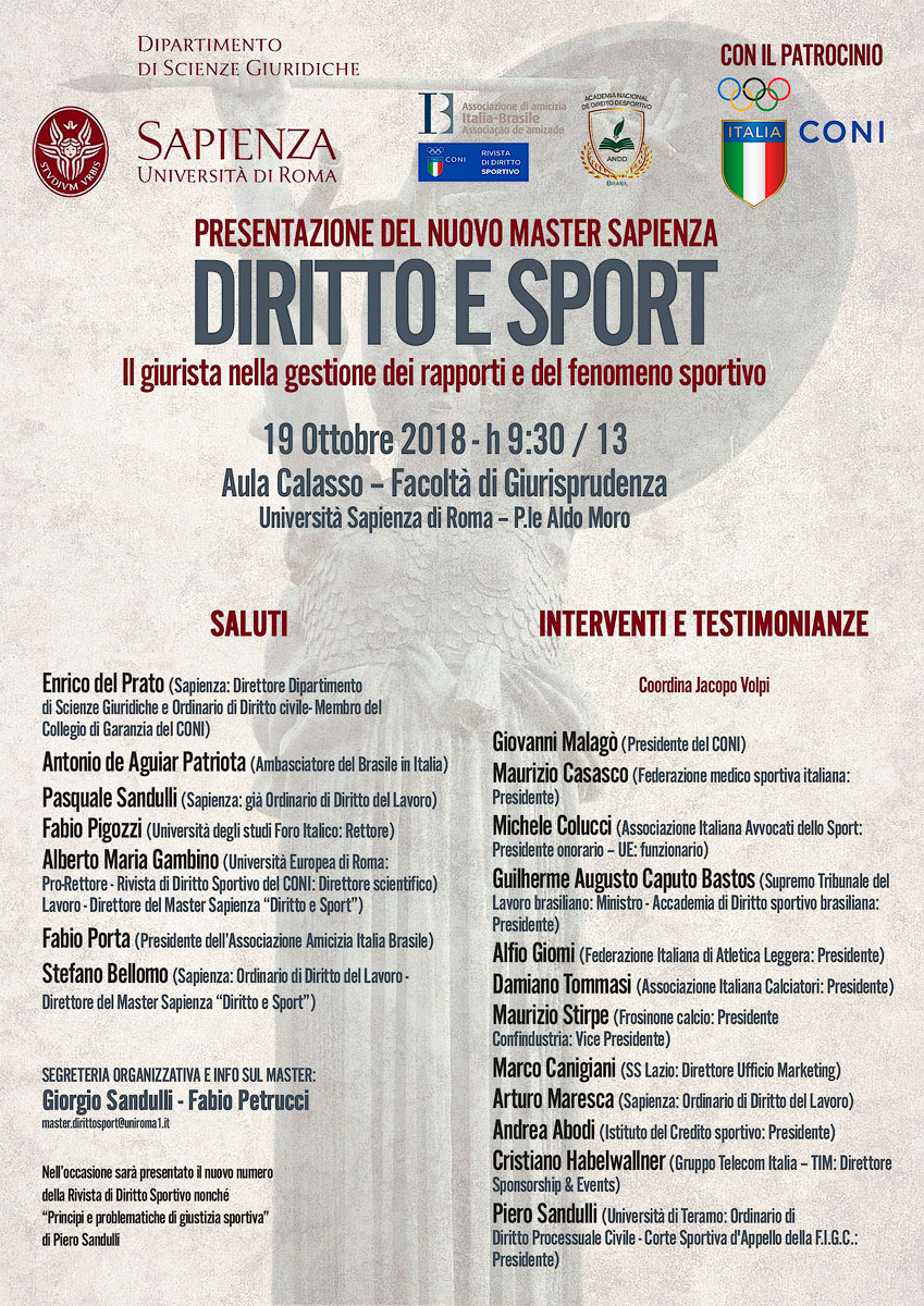 ROMA - Presentazione del nuovo master Diritto e Sport. Il giurista nella gestione dei rapporti e del fenomeno sportivo