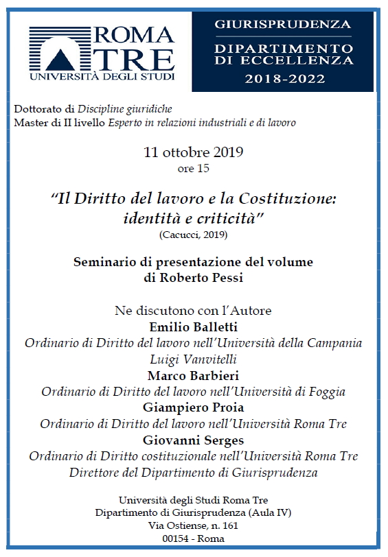 ROMA - Presentazione del volume "Il Diritto del lavoro e la Costituzione: identità e criticità"