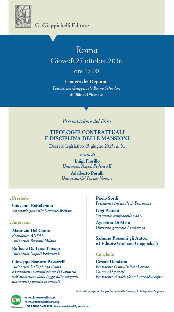 Da Gio, 27/10/2016 a Gio, 27/10/2016 Mode On-site-only 14/11/2022 ROMA - Tipologie contrattuali e disciplina delle mansioni | Decreto legislativo 15 giugno 2015, n. 81 on-site only | Via Uffici del Vicario, 21 - ore 17
