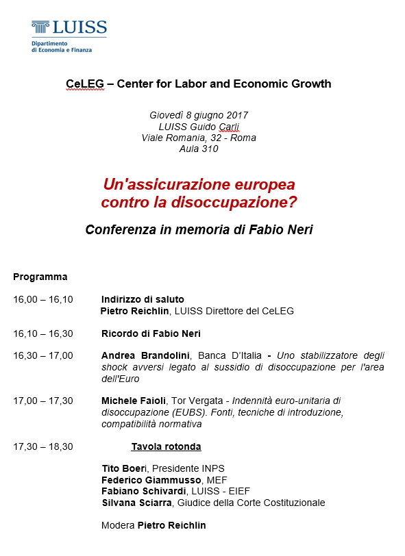 Da Gio, 08/06/2017 a Gio, 08/06/2017 Mode On-site-only 14/11/2022 ROMA - Un'assicurazione europea contro la disoccupazione? | Conferenza in memoria di Fabio Neri on-site only | Viale Romania, 32 - ore 16