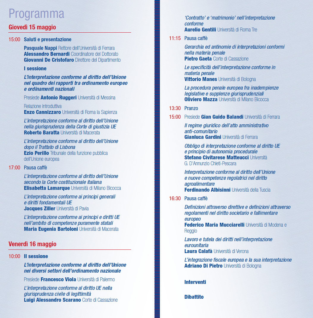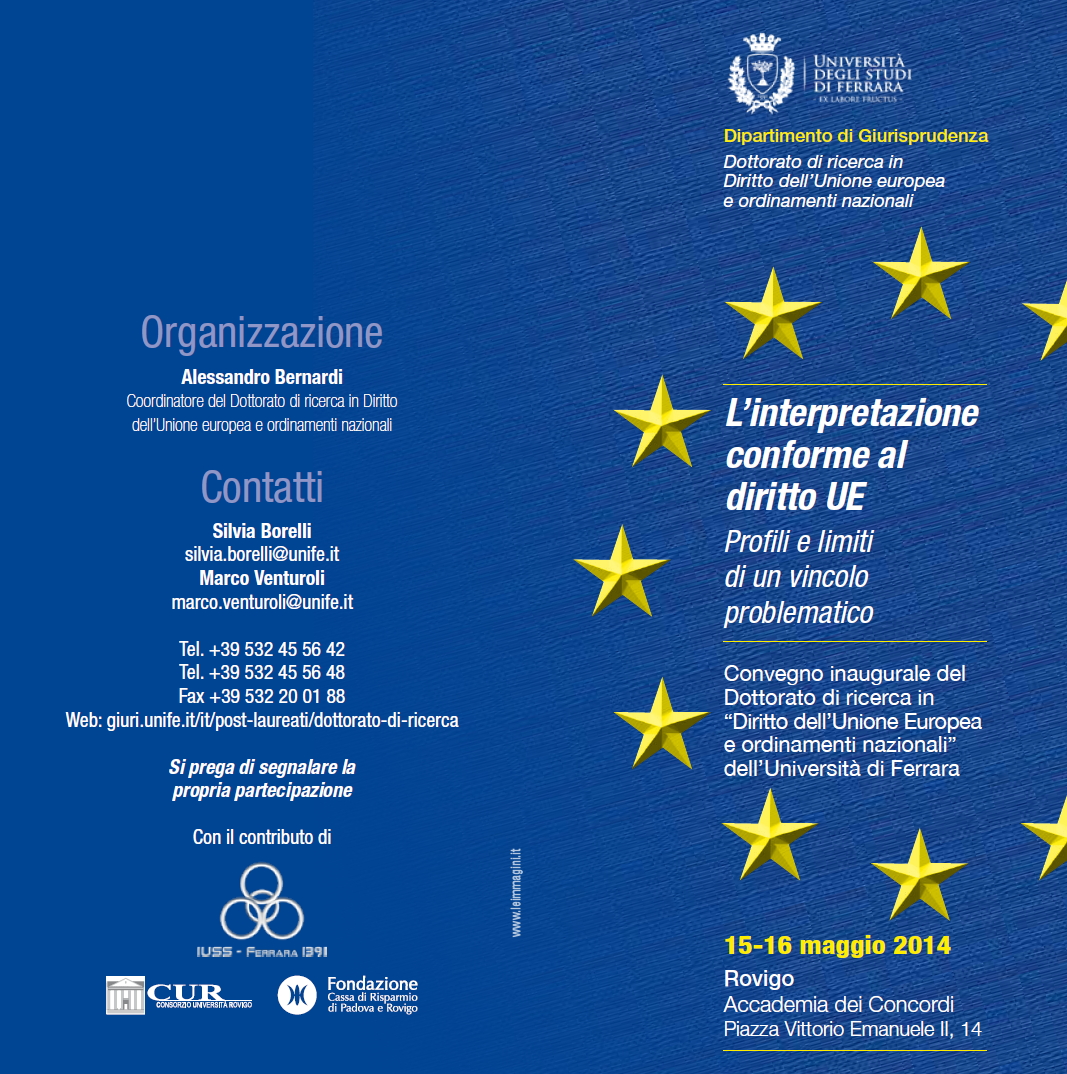 Da Gio, 15/05/2014 a Gio, 15/05/2014 Mode On-site-only 14/11/2022 ROVIGO - L’interpretazione conforme al diritto UE. Profili e limiti di un vincolo problematico (15-16 maggio) on-site only | piazza Vittorio Emanuele II