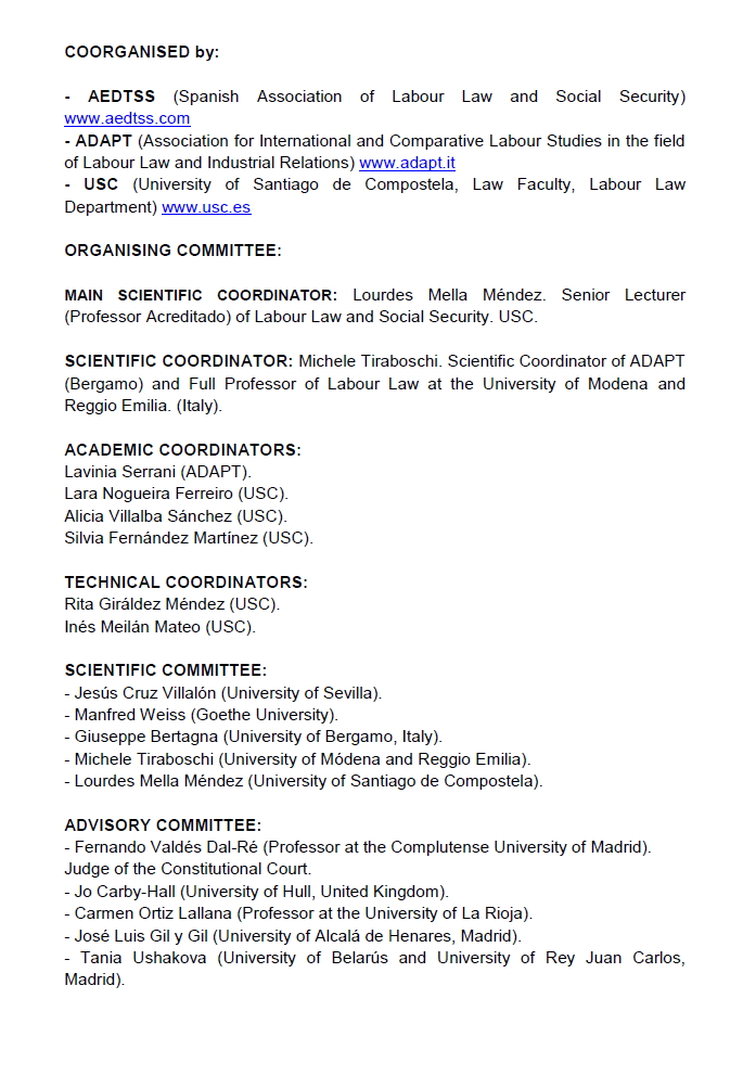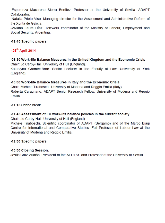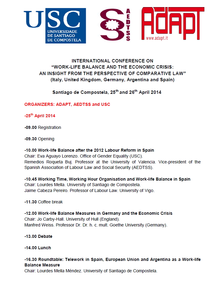 SANTIAGO DE COMPOSTELA - Work-life balance and the economic crisis: an insight from the perspective of comparative law. (Italy, United Kingdom, Germany, Argentina and Spain). International Conference (25-26 April 2014)
